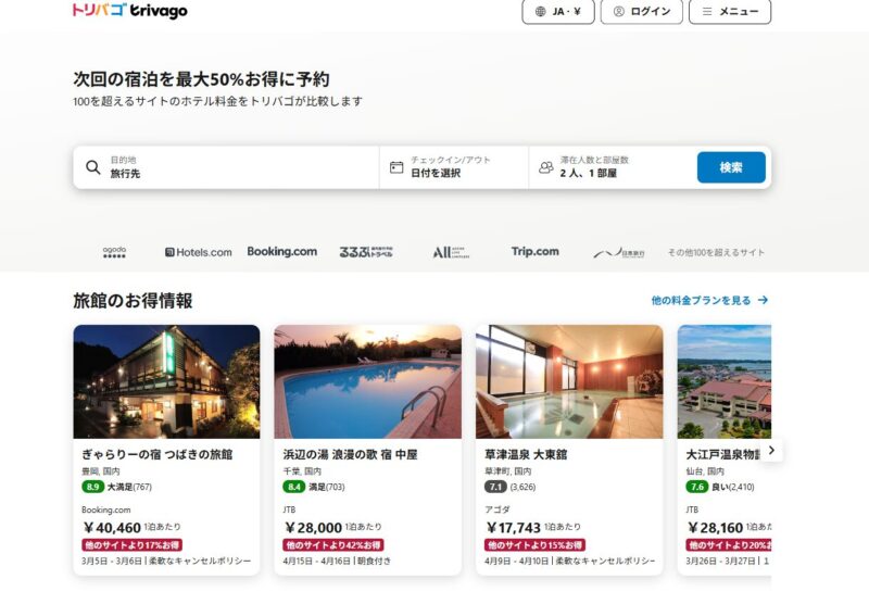 トリバゴの強みの一つは、複数の大手予約サイトと連携しているため、多角的な料金比較が可能な点です。